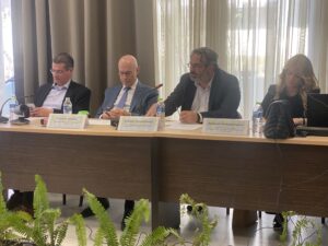 Την Παρασκευή 7 Απριλίου 2023 ο Δήμαρχος Δημήτρης Λουκάς συμμετείχε στη συνεδρίαση της Επιτροπής Χωροταξίας, Υποδομών, Μεταφορών και Δικτύων της ΚΕΔΕ η οποία πραγματοποιήθηκε στο δημαρχείο Κατερίνης. Η συνεδρίαση της Επιτροπής, της οποίας προέδρευε ο Δήμαρχος Κατερίνης Κώστας Κουκοδήμος, περιελάβανε σημαντικές εισηγήσεις από τον σύμβουλο του πρωθυπουργού για θέματα Περιβάλλοντος, Κλίματος και Κυκλικής Οικονομίας, Γιώργο Κρεμλή, τον πρόεδρο του Πράσινου Ταμείου Στάθη Σταθόπουλο, καθώς και από τον Γ. Γραμματέα του Υπουργείου Περιβάλλοντος Ευθύμη Μπακογιάννη.