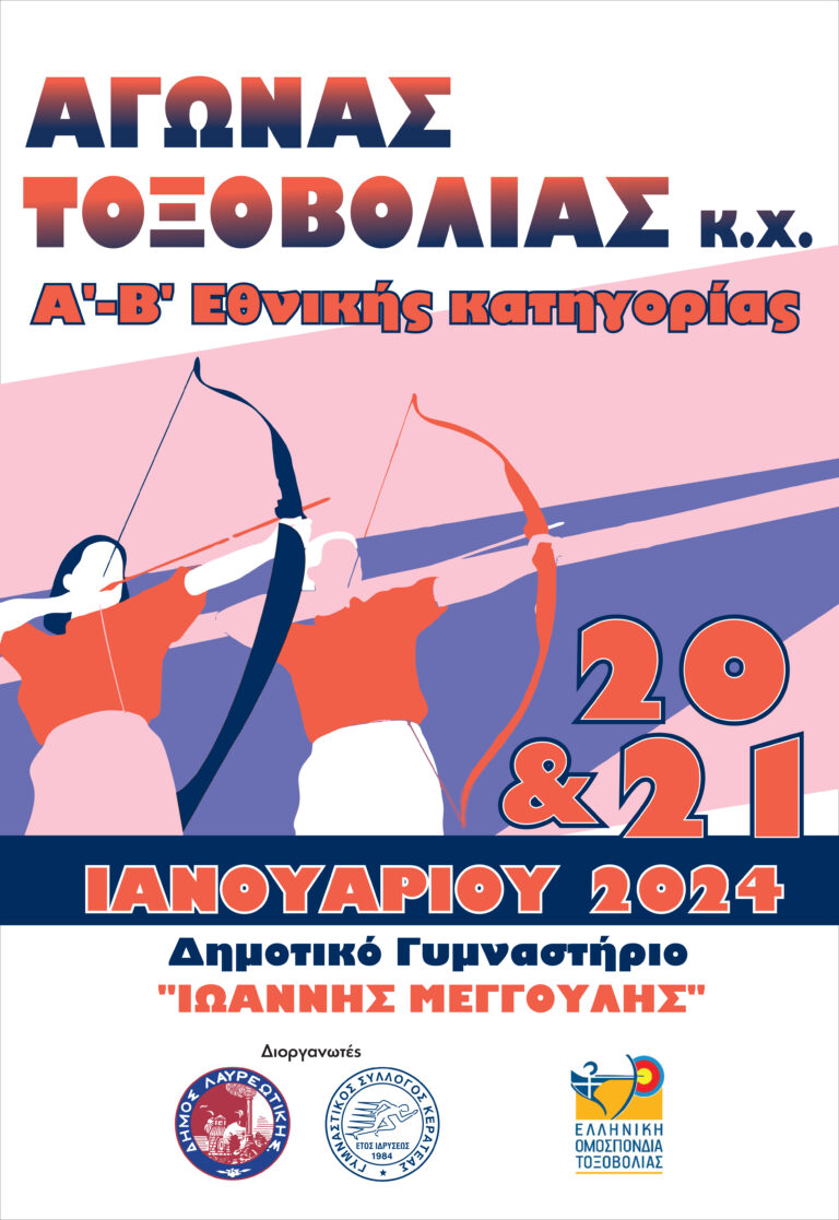 Ο Δήμος Λαυρεωτικής σε συνεργασία με την Ελληνική Ομοσπονδία Τοξοβολίας, προκηρύσσει αγώνα τοξοβολίας Κλειστού Χώρου το Σάββατο 20 Ιανουαρίου 2024 και την Κυριακή 21 Ιανουαρίου 2024 στο Κλειστό Γυμναστήριο Κερατέας «ΙΩΑΝΝΗΣ ΜΕΓΓΟΥΛΗΣ» για τις παρακάτω αγωνιστικές κατηγορίες: