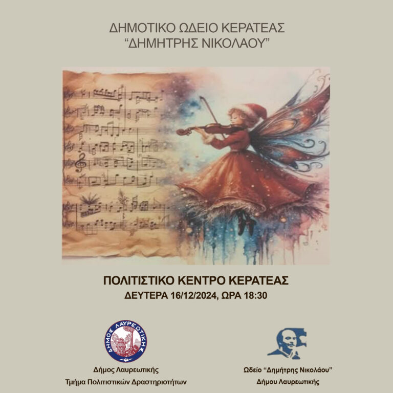 Δευτέρα 16 Δεκεμβρίου στις 18:30 στο Πολιτιστικό κέντρο Κερατέας.