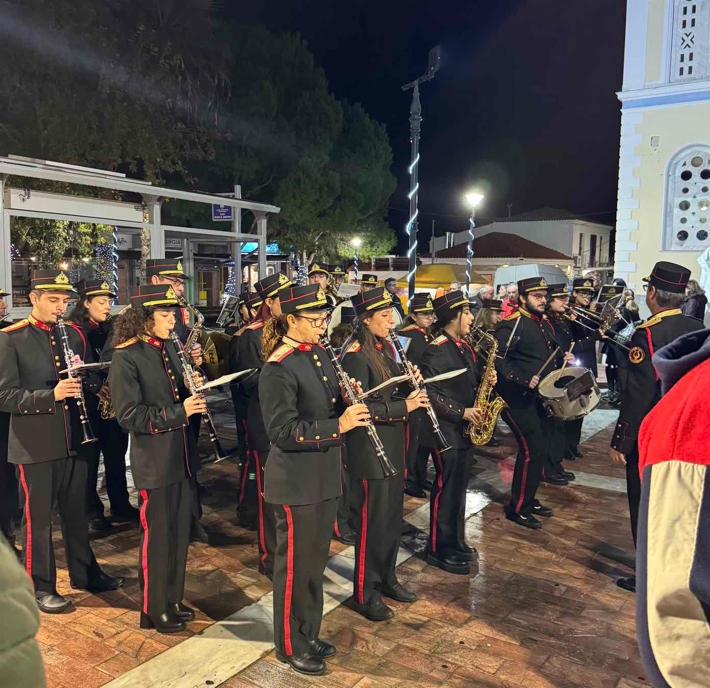 Η Δημοτική Φιλαρμονική Κερατέας με τον μαέστρο Γιάννη Οικονομάκη έδωσε τον εορταστικό τόνο, ενώ η μουσική παρουσίαση του Γιώργου Πολυχρονίου συνέβαλε καθοριστικά στη ζεστή ατμόσφαιρα της βραδιάς.