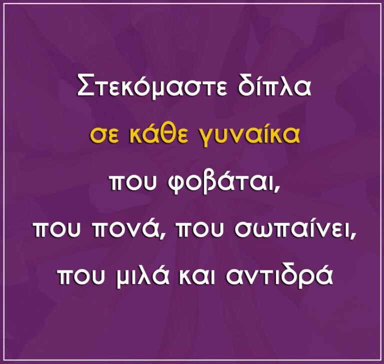 Σήμερα στεκόμαστε δίπλα σε κάθε γυναίκα που φοβάται, που πονά, που σωπαίνει, που μιλά και αντιδρά.