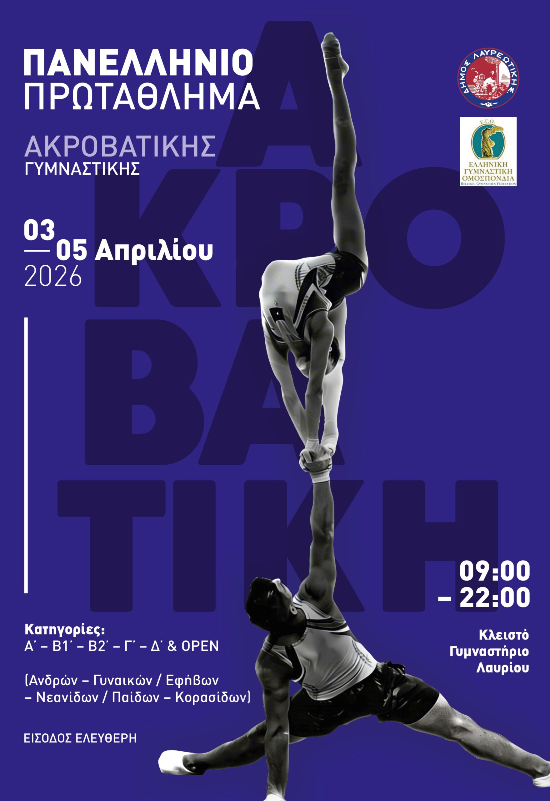 Απριλίου 2026, στο Κλειστό Γυμναστήριο Λαυρίου.